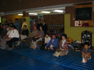 かつては、現役部員達が団扇を片手に焼き鳥を焼いたりしていたそうですが、現在はOB対現役のエキシビジョンマッチ、その後、道場にて盃を交し懇親会というのが大きな流れとなっております。